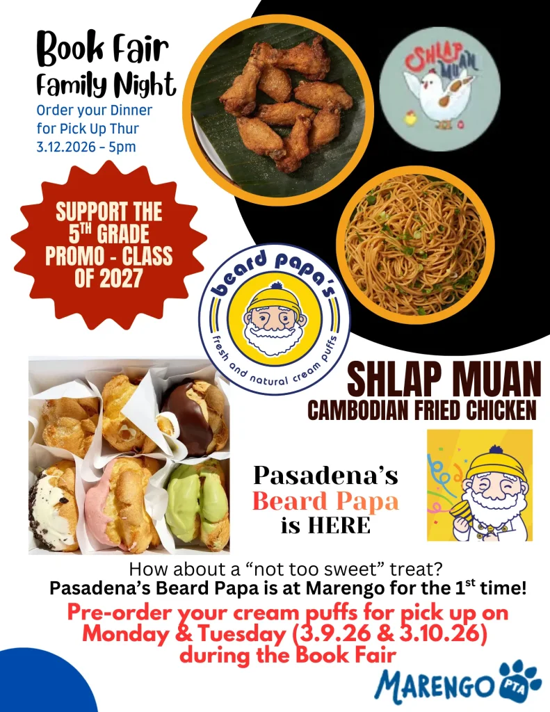 Pre-orders for Beard Papa's is due by March 5 at 9PM , Shalp Muan Wings dinner by March 10 at 9PM.